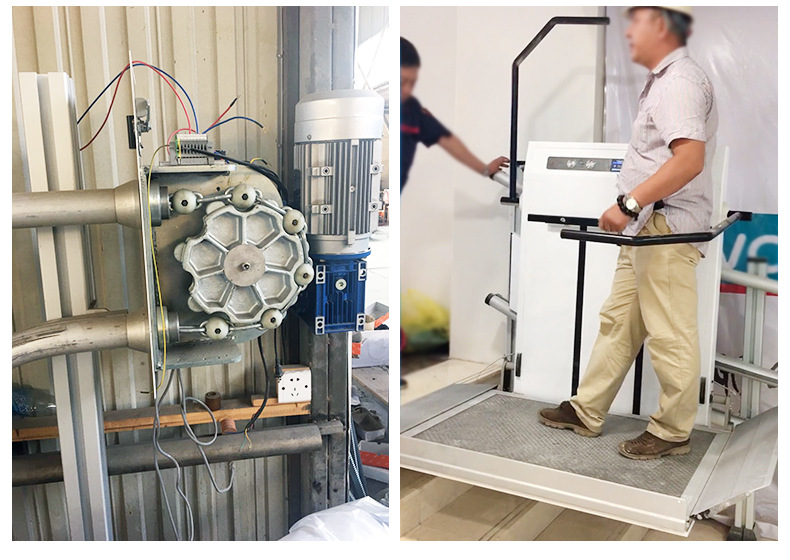 載人平臺底部和坡板的安全感應板可以探測障礙物,如遇障礙即令平臺停止運行